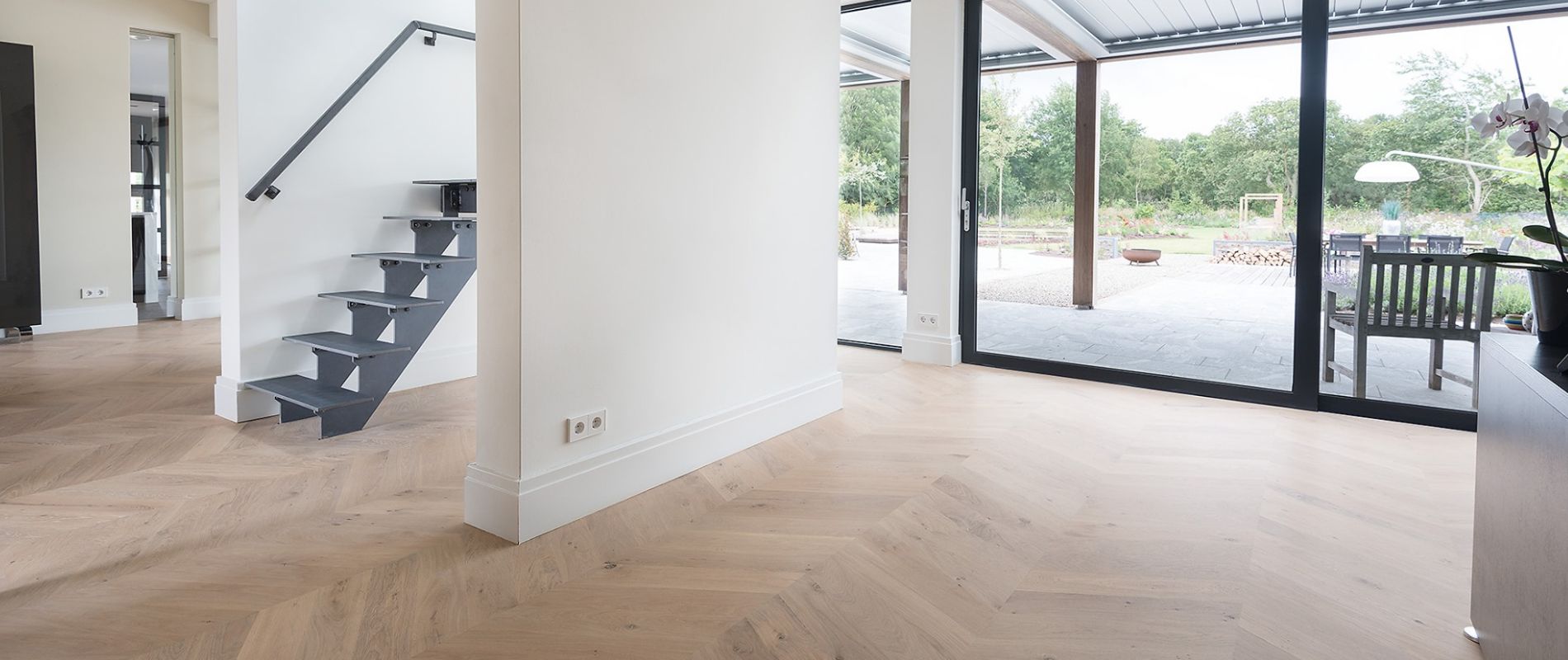 Ook de vervaardiging van vloeren in vallende lengtes heeft hiermee te maken. Hierdoor maken wij optimaal gebruik van de aangeleverde lengtes en hebben geen afval door alles terug te korten naar één lengte.