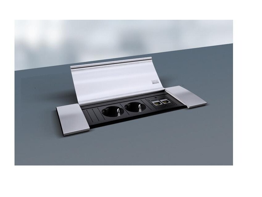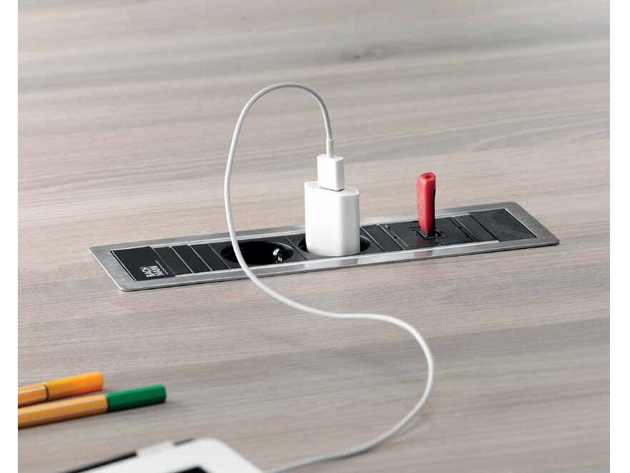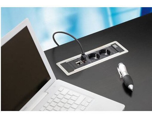 Power Frame van de firma Bachmann, voorheen bekend als inbouwunit Samos, combineert stijl, kwaliteit en tijdloosheid voor een betaalbare prijs. De hoge kwaliteit en het robuuste uiterlijk zijn een toevoeging aan een werkplek. De unit is gemakkelijk in te bouwen in een bureau- of werkblad met een minimale dikte van 10 mm.