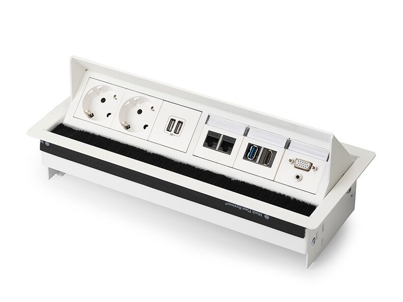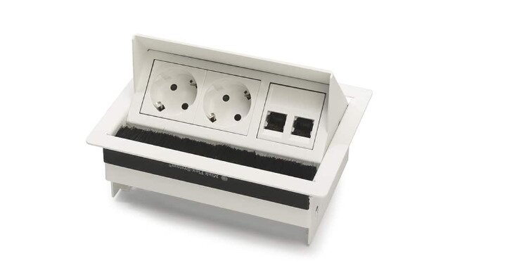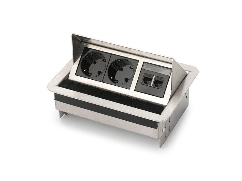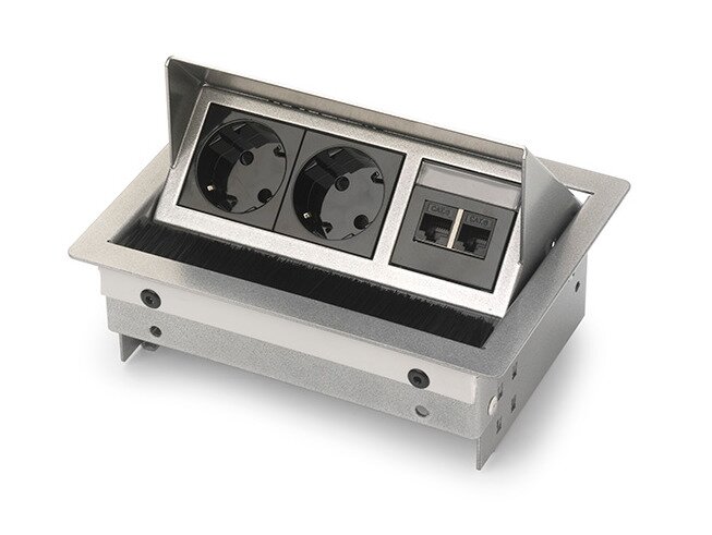 De Rhodos inbouwunit is een Nederlands product en overal inzetbaar. De elegant, degelijke en betrouwbare unit heeft een goede prijs/kwaliteit verhouding en is eenvoudig te integreren in bladen met een maximale dikte van 40mm. De Rhodos is gemaakt van sendzimir plaatstaal voorzien van een poedercoating of van geschuurd RVS. Opvallend is het wit glanzende schakelmateriaal, dit vormt een prachtig geheel met een wit gepoederde behuizing. In de zilvergrijze en RVS geschuurde units wordt zwart glanzend schakelmateriaal toegepast.
