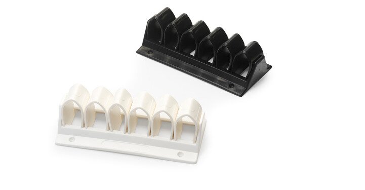 Cable grip is een slimme en flexibele oplossing voor het wegwerken van bekabeling aan de onderzijde van het bureau. De Cabel grip bevestigt u middels 2 of 4 schroeven aan de onderzijde van het werkblad. De kabels klikt u eenvoudig tussen de klemmen. De klemmen zorgen ervoor dat de kabels goed vast zitten en er niet gemakkelijk uitvallen.