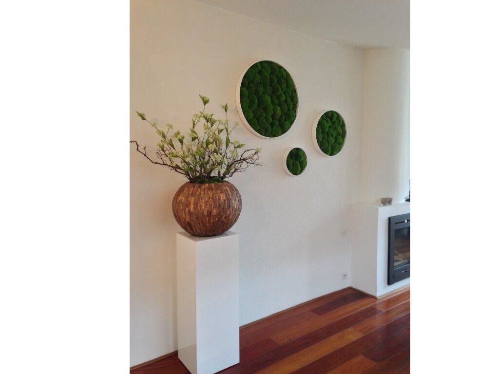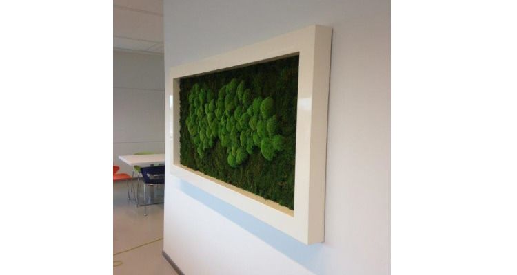 Designpaneel, geluidsabsorberend met 100% natuurlijk gemummificeerd mos. Leverbaar in elke gewenste afmeting met verschillende soorten frames. Akoestische rapporten op aanvraag beschikbaar. Ook mogelijk in vorm van room dividers en/of akoestische plantenbakken.