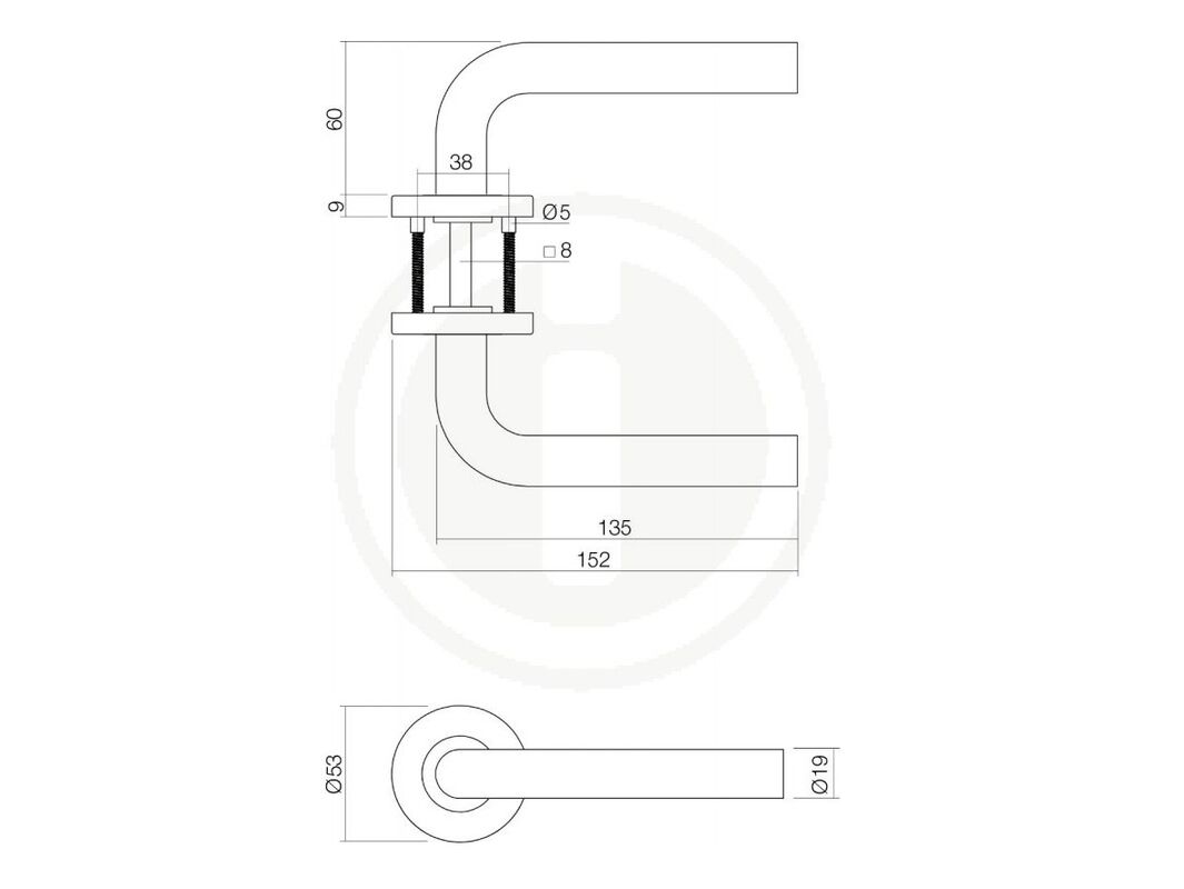 Deze deurbeslag set voor toilet-/badkamerdeuren bestaat uit een wc-slot met een bijpassende deurkruk en wc-sluiting. Het slot wordt geleverd in toilet-/badkamer uitvoering op 63 mm en met een 8 mm stift. De doornmaat van dit slot is 50 mm en wordt geleverd inclusief sluitplaat en roestvast stalen voorplaat. U kunt dezelfde inbouw- en freesmaten gebruiken als een standaard woningslot. De dagschoot van dit slot is omwisselbaar; dat wil zeggen dat deze voor zowel naar linksdraaiende als rechtsdraaiende deuren geschikt is. Deurkruk Recht op een ronde rozet is vervaardigd uit roestvast staal en is naderhand geborsteld, waardoor hij een matte uitstraling heeft. De rozet heeft een stalen onderconstructie en is voorzien van een veer, die ervoor zorgt dat de kruk na gebruik weer terugveert naar zijn originele horizontale positie. Deze deurkruk is geschikt voor een deurdikte van 38 - 54 mm en wordt per paar geleverd inclusief bijpassende wc-sluiting en bevestigingsmateriaal.