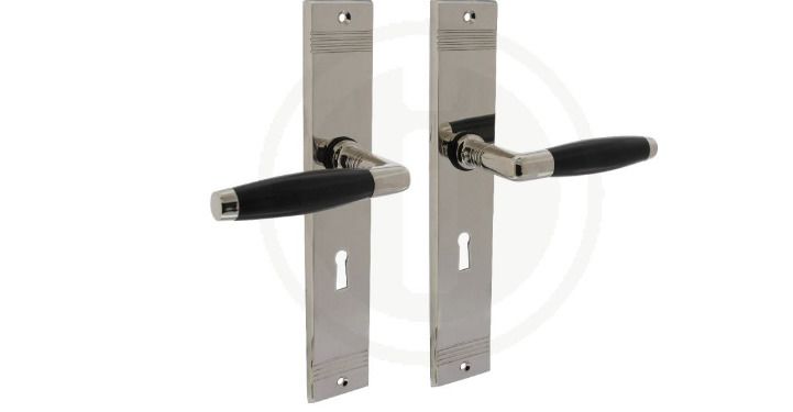 Deurkruk Ton Basic met schild is uitgevoerd in nikkel en naderhand gepolijst, waardoor hij een glimmend uiterlijk krijgt. Door de combinatie met een ebbenhouten greep, heeft deze kruk een bijzondere uitstraling. Deze deurklink op rechthoekig schild is voorzien van een sleutelgat maat 56 mm. Hij wordt per paar geleverd en het schild is voorzien van schroefgaten. Het voordeel van deurkrukken op schild is dat ze vaak de gaten afdekken die voorheen in de deur zaten.