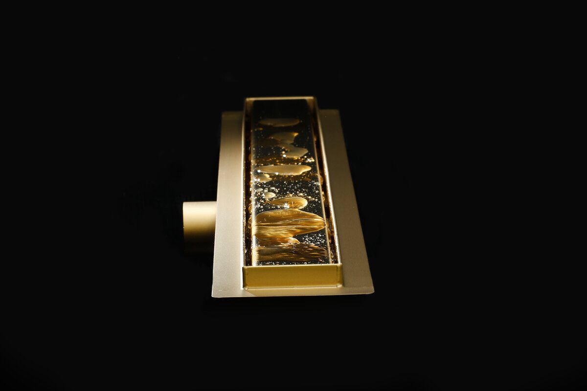 Doucheputten: 146 x 146 mm. Puthuis gemaakt van duurzaam gerecycled ABS kunststof. Bovenzijde is gemaakt van geborsteld RVS met PVD coating. Voorzien van een zij of onder afvoer ø 50 mm. Rooster en stankslot zijn gemakkelijk uitneembaar voor onderhoud.