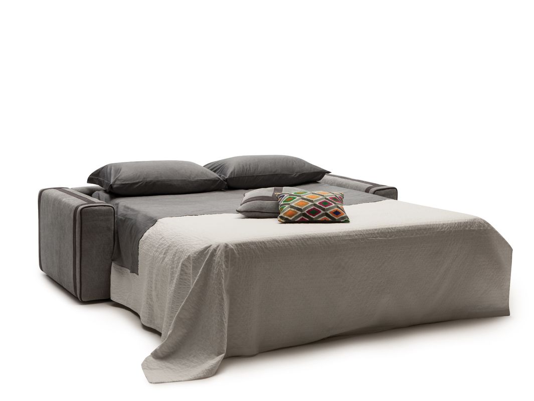 With Ellington, Milano Bedding not only wants to enhance the seating and sleeping comfort, with its slatted bed base and various mattresses available, but also to design, featuring the special leather or fabric details on armrests and backrest. By simply rotating the back, without removing any of the cushions, Ellington converts into a conventional bed with a 200 cm. mattress. The cover is completely removable and washable according to the fabric chosen. Ellington is also available as a sofa and can be completely disassembled for easy delivery.