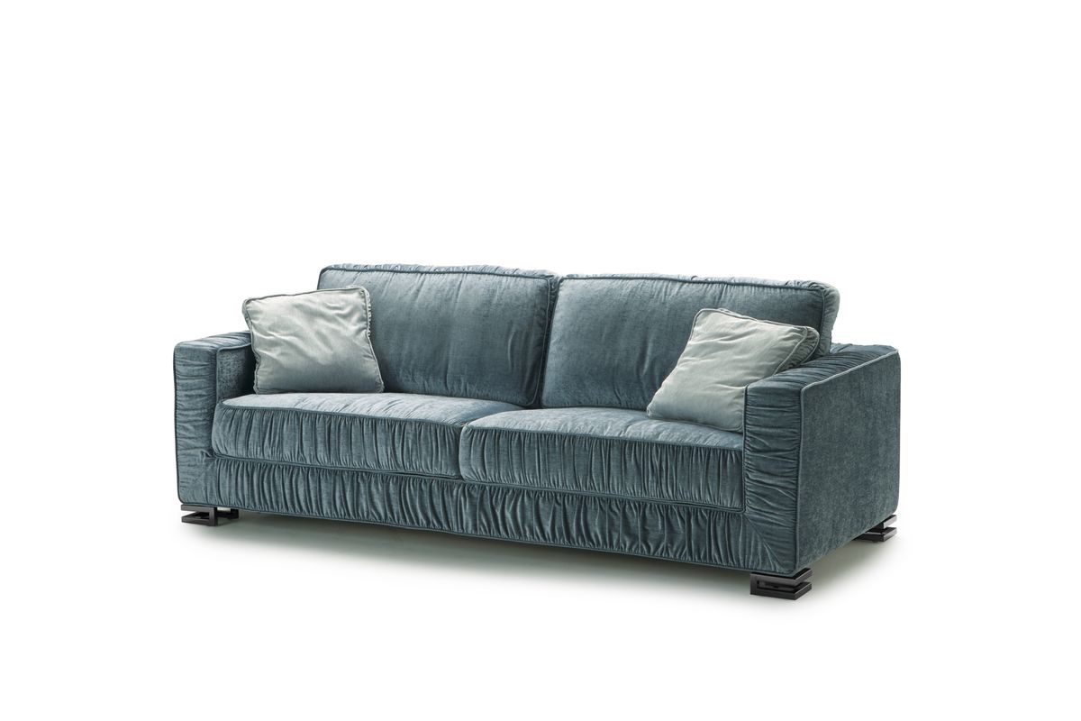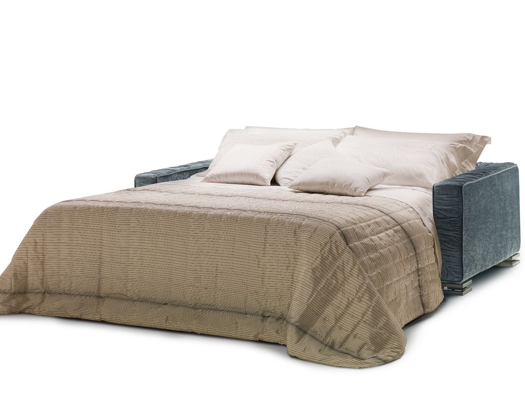 Garrison has a particular removable cover with details recalling the art-deco style. Featuring feather seat and back cushions with polyurethane inserts and feet in black chrome finish upon request, Garrison turns into bed with a 195 cm. long mattress and is also available in all sizes in fixed version.
