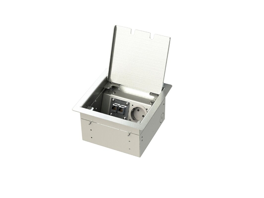 De vloerdozen van serie 8500 zijn de perfecte oplossing voor een stevige constructie in een holle ruimte met een mooie afwerking van de vloer. Naast een RVS deksel is deze serie namelijk leverbaar met een deksel waar een stuk parket, natuursteen of ander materiaal in gelegd kan worden. De inlegdiepte van deze deksel is 15 mm. De totale hoogte van de vloerdoos is 90 mm.
