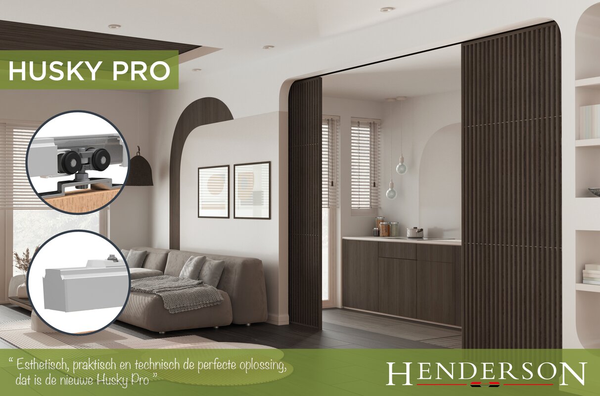 Husky Pro serie is een hoogwaardig beslagsysteem voor enkele en dubbele schuifdeuren, dat geschikt is voor montage aan de wand of het plafond, maar ook voor inbouw. Husky Pro wordt gebruikt voor schuifdeuren met een maximaal deurgewicht van 120kg. Het beslag is verbeterd ten opzichte van het bestaande Husky 100 aluminium systeem. De loopwagen is voorzien van een nieuwe vorm wielen waardoor deze nog soepeler loopt alsmede de anti-jump bevorderd.