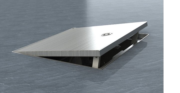 Vloerdoos serie 2003 is standaard uitgerust met 3 modules. Bij een gesloten deksel is deze vloerdoos spatwaterdicht IP55. De instortbehuizing van deze vloerdoos is geheel vervaardigd uit RVS en uitermate geschikt tegen zuren en logen. Het deksel is van aluminium, RVS geëloxeerd. Met de speciale sleutel is deze vloerdoos te openen en af te sluiten. De vloerdoos is vierkant van afmeting en laat zich dus goed verwerken in een plavuizen of natuurstenen vloer. Tijdens gebruik blijft het deksel gedeeltelijk geopend voor de invoer van de bekabeling.