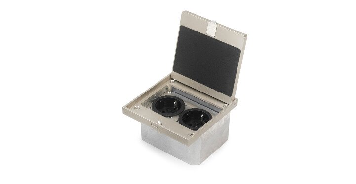 De vloerdozen van serie 8700 zijn standaard leverbaar in een 1- en 2-voudige versie. De 8702 biedt naast de 230 V ruimte aan verschillende multimedia aansluitingen waaronder data, HDMI, VGA/audio, XLR, CAI en Audio. Hierdoor zijn vele combinaties mogelijk. Natuurlijk heeft OCS al vele uitvoeringen voor uw uitgewerkt, deze treft u in het overzicht van artikelnummers aan. De vloerdozen worden altijd compleet geleverd met wcd’s en eventuele multimedia connectoren.