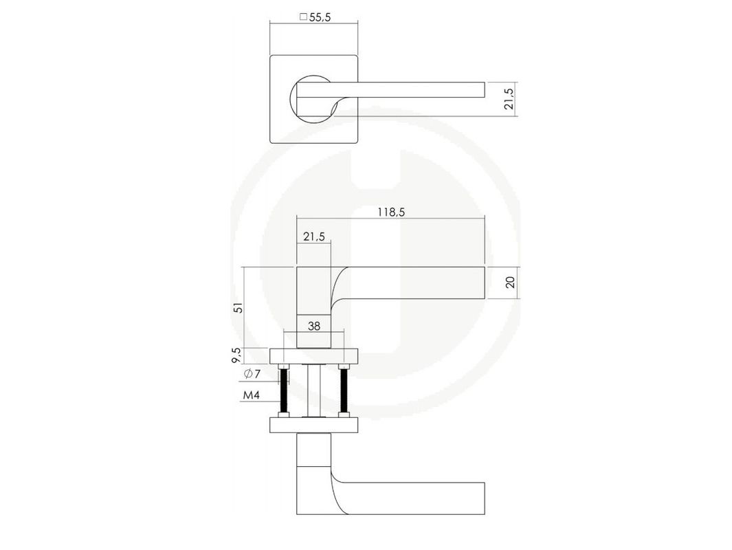 Deurkruk Ben is uitgevoerd in nikkel en naderhand geborsteld, waardoor het een matte uitstraling heeft. Deze deurkruk op vierkant rozet wordt per paar geleverd.
