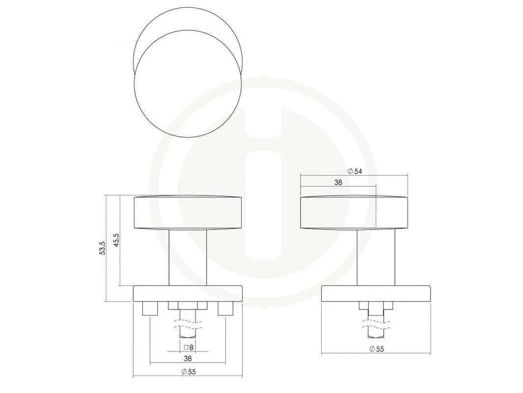Deze deurknop is vervaardigd uit roestvast staal. Door het gebruik van massief rvs heeft deze deurknop een lange levensduur en door de geborstelde behandeling heeft deze knop een matte uitstraling. Deze deurknop heeft een diameter van 55 mm en is voorzien van nokken, waardoor hij beter op zijn plek wordt gehouden. Deze knop kan eenzijdig gemonteerd worden met het bijgeleverde bevestigingsmateriaal. Aan de andere zijde kan een deurkruk geplaatst worden die door middel van de meegeleverde wisselstift aan de knop verbonden kan worden.