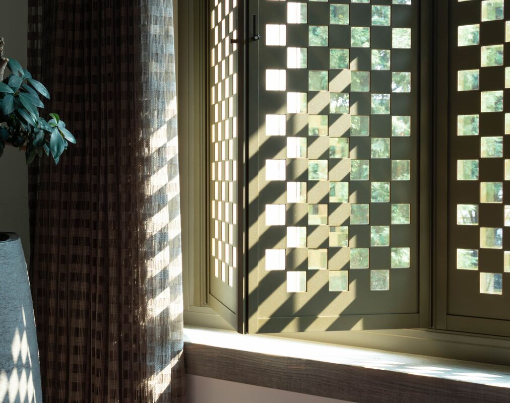 Het eenvoudige zwart-witte schaakbord is de inspiratie geweest bij dit ontwerp, het simplistische vakkenpatroon vormt de kracht van dit patroon. De scheiding tussen schaduw en licht is hier heel zuiver maar kan heel mooi de ruimte tot leven laten komen; de strenge blokken vervormen namelijk bij iedere ronding die ze tegenkomen.
