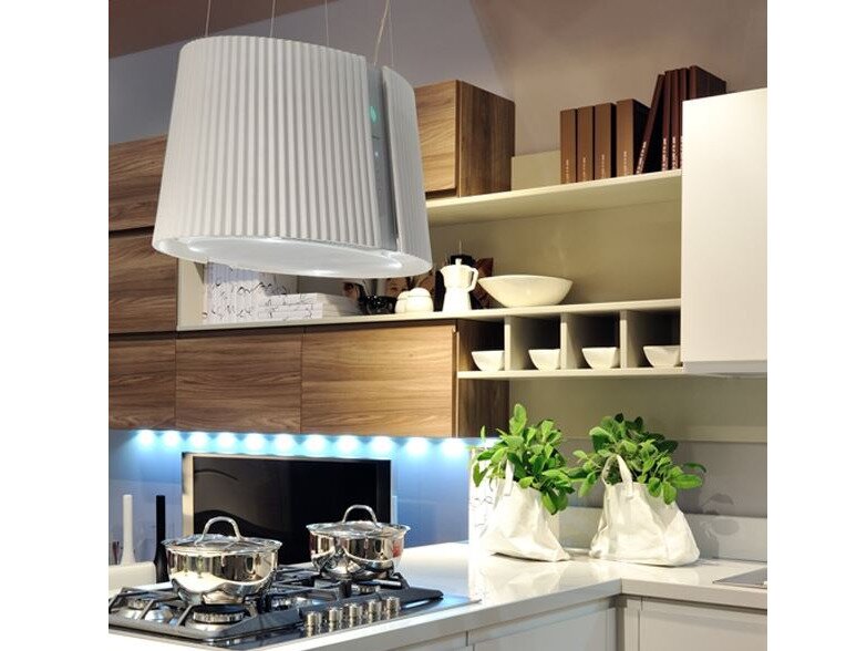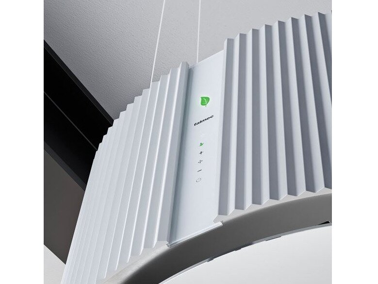 Deze afzuigkap blinkt uit in het filteren van geuren als in het ontsmetten van de omgeving. Geometrische puurheid en een minimale en moderne stijl zijn de visuele troeven van deze afzuigkap die lucht rondom de hele afzuigkap kan afzuigen waardoor hij een veel groter afzuigbereik heeft.