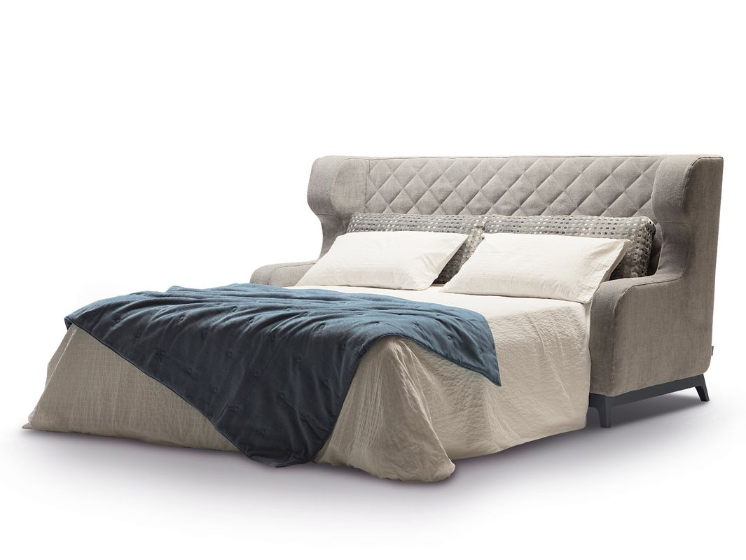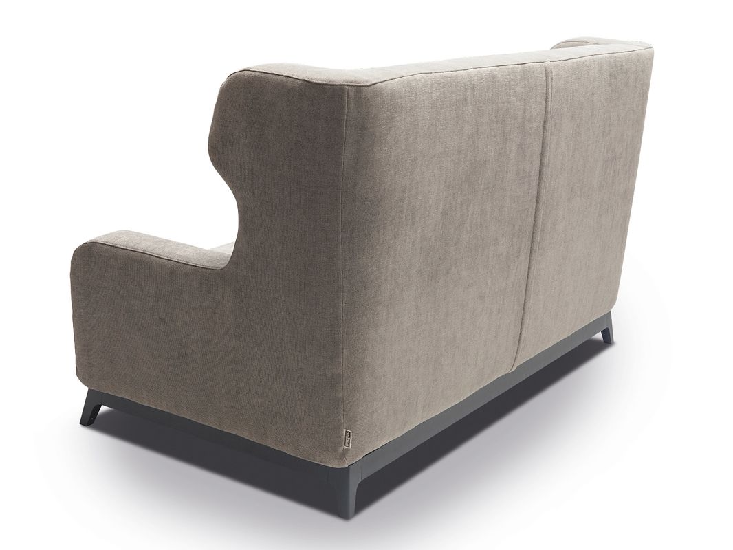 Morgan is distinguished by its Art Deco design and for the high back, creating a modern Bergère; the well-proportioned volumes combine classic and contemporary tastes. Morgan is ideal for decorating the home environment, lobby areas and the receptions of hotels and offices. Featuring a seat in feather and high resilient polyurethane foam, feather backrest pillows and solid beech wood base in standard wenge finish or RAL color on demand, Morgan is available in three widths: 222, 208 and 178 cm and in several contemporary or classic fabrics. Morgan is also available in bed version with a 190 cm long mattress.