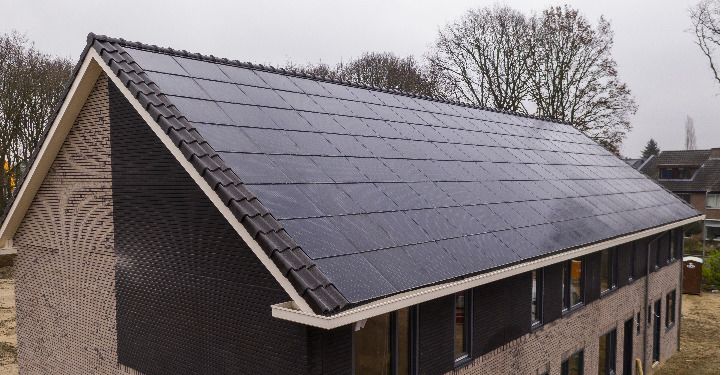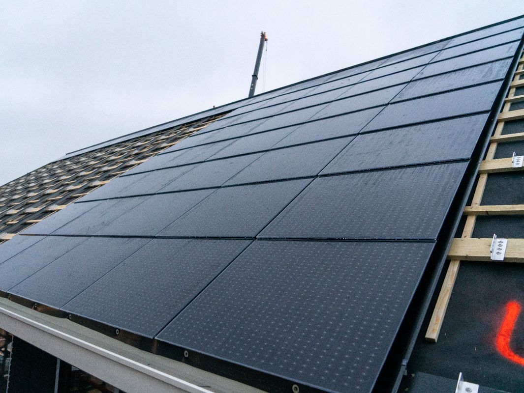 We bevestigen de PV-panelen direct op de dakconstructie. De panelen vervullen hiermee de waterkerende functie. Zo besparen we op een andere waterkerende laag, zoals dakpannen, felsplaten, kunststof onderplaten of EPDMdakbedekking.