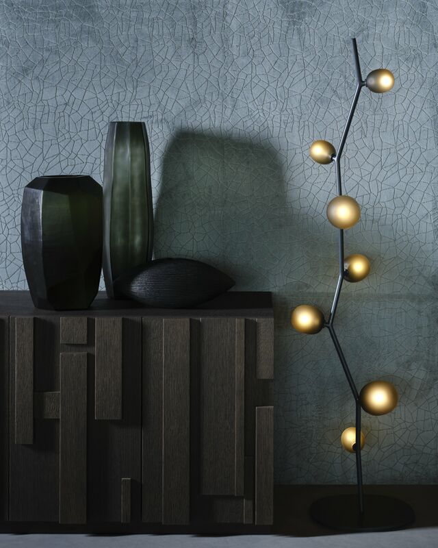 Een echt statement maak je met Grunge; dit heerlijk zachte fluweel met luxeuitstraling, kenmerkt zicht door een opvallend grafisch design dat isgeïnspireerd op de textuur van uitgedroogde klei. Het typerende kenmerk van deze stof is de kleurverandering wanneer er over de stof wordt gewreven.