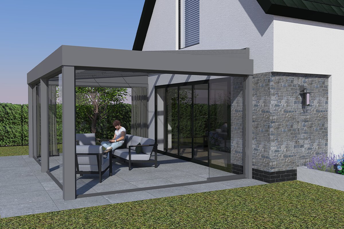 Deze innovatieve overkapping met een elektrisch of handmatig schuifdak zit in een horizontale gootconstructie waarmee de tuinkamer aan de woning horizontaal oogt. De strakke lijnen en fraaie details zoals de geïntegreerde dimbare verlichting geven het schuifdak een luxe uitstraling. Dit dynamische dak is een genot voor het oog en geeft optimaal comfort om ieder seizoen te genieten van het buitenleven. Dit model is zowel in glas als polycarbonaat uitvoerbaar.