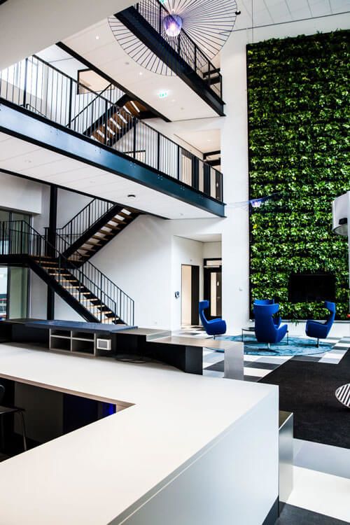 Geen kale, saaie muren meer? Laat u inspireren door een groene plantenwand: een fraaie en natuurlijke wand met verfrissend groen. Een groene wand maakt de bedrijfsomgeving aantrekkelijker voor klanten en werknemers, verlaagt de geluidsoverlast, zorgt voor een goede luchtvochtigheid en een gezonde en schone lucht. Het positieve effect op het werkklimaat is groot. Wie werkt in een groene werkomgeving is aantoonbaar minder ziek en produceert meer. Wij noemen dat gratis ‘Vitamine G’.