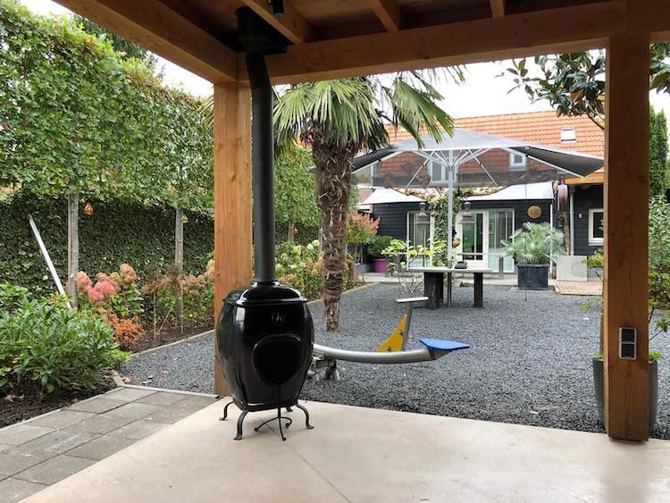Door de gewijzigde regelgeving met betrekking tot open haarden en kachels is onze African Flame naar de tuin verbannen. Maar met de komst van de veranda's en andere mooie overkappingen in onze tuinen, wordt het genieten van een fijn houtvuurtje in deze potkachel een absoluut feestje.