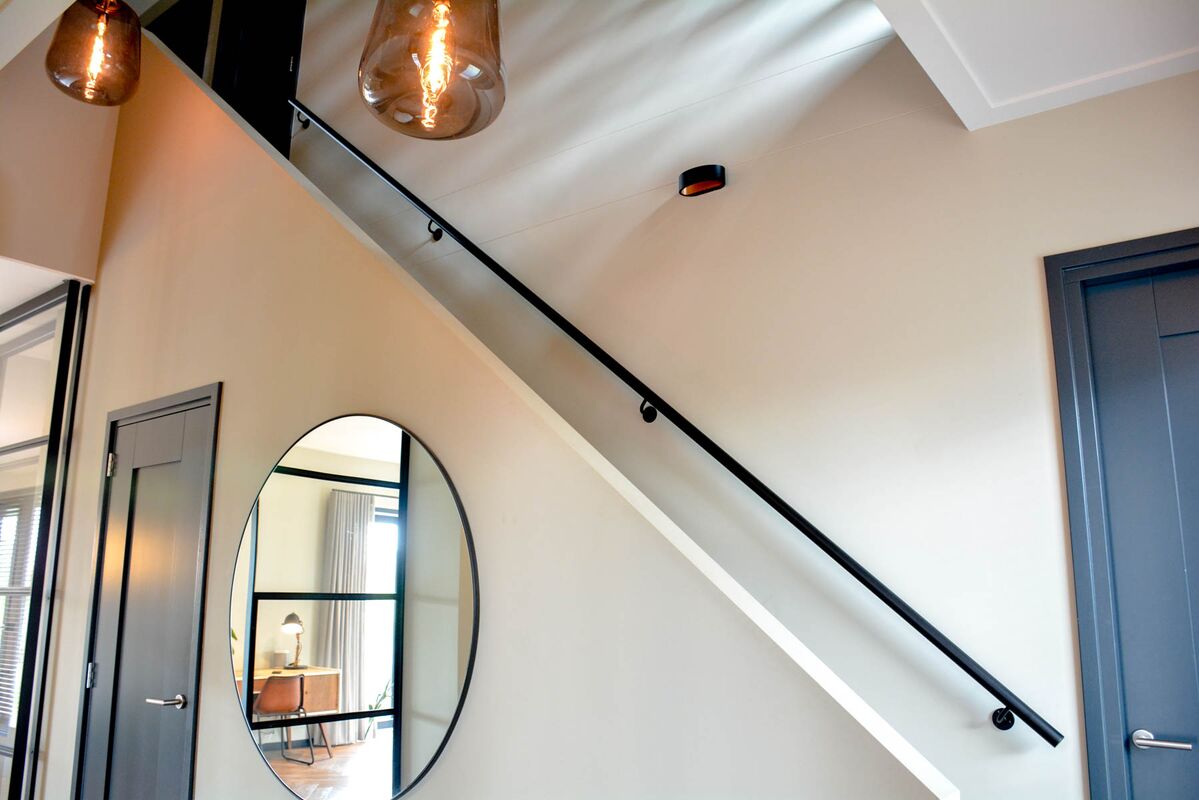 Een stalen trapleuning geeft een stoere uitstraling aan uw trap! We maken iedere leuning op maat aan de hand van uw trapgat. Zodat de leuning perfect bij uw trap past. Daarbij kunt u uit vele uitvoeringen kiezen. Gaat u voor rond of juist rechthoekig? Ook de kleur van de leuning kan aangepast worden naar uw wensen. Alle details van de trapleuningen worden met de hand afgewerkt wat het resultaat nog mooier maakt!