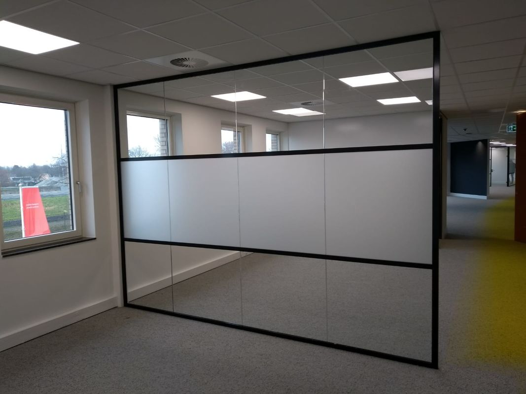 Glaswanden geven maximale transparantie waar dat nodig is. Traditionele cassette-wanden met vlakverdelingen in ieder gewenst patroon of volglaswanden met minimale profilering. Door het toepassen van glas met akoestische eigenschappen is hoge geluids-wering mogelijk. Glaswanden creëren ruimten met een frissen look.
