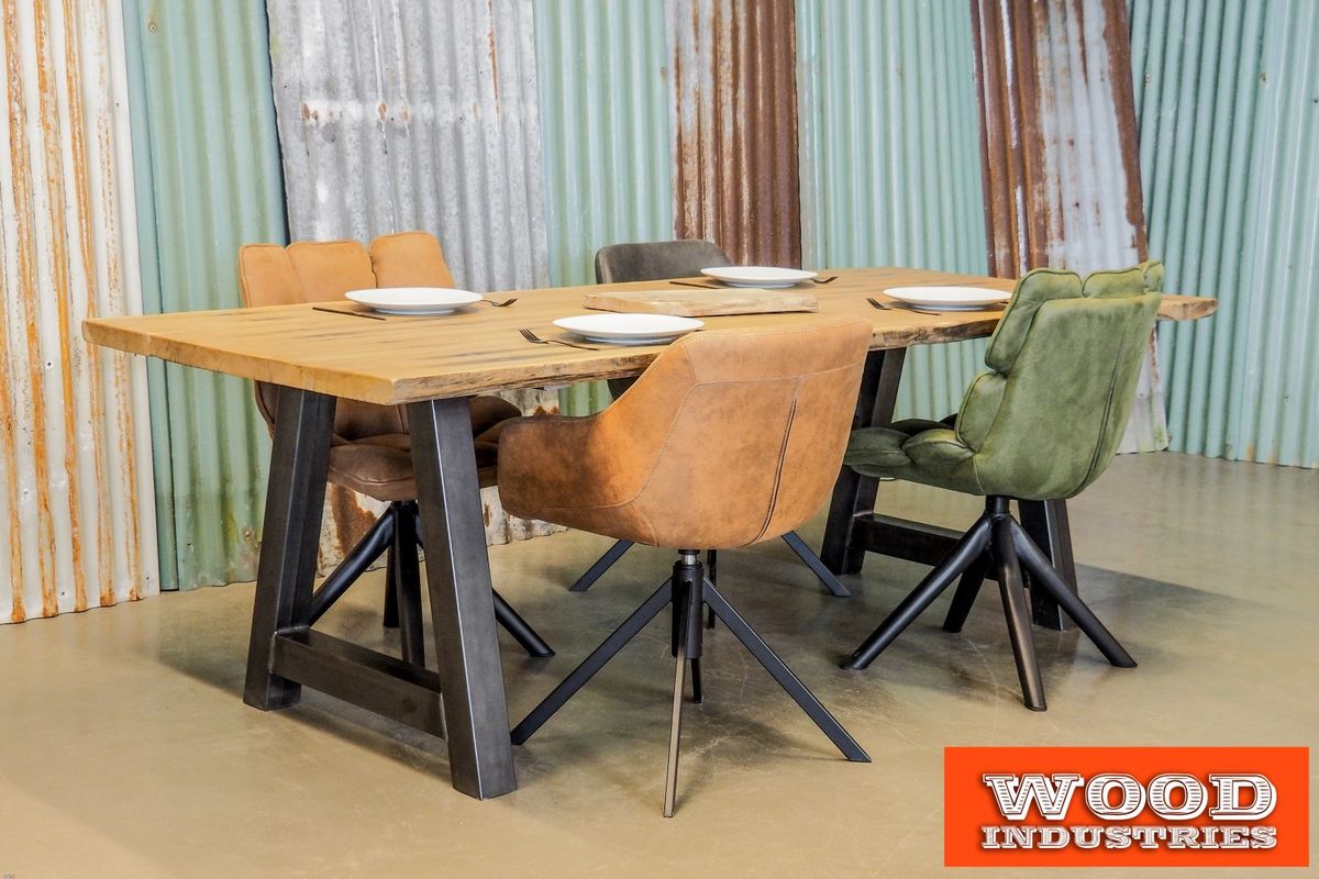 Een nieuwe tafel van oud hout. Het hout van deze tafel is gemaakt van oude spoorbielzen die nieuw leven zijn ingeblazen. De gaten van de houten pennen zitten er nog in. Er kan zelf gekozen worden of deze gaten gevuld moeten worden met hout of dat de gaten vrij gehouden moeten worden. Dit geleefde hout heeft hier en daar een droogscheurtje.