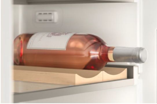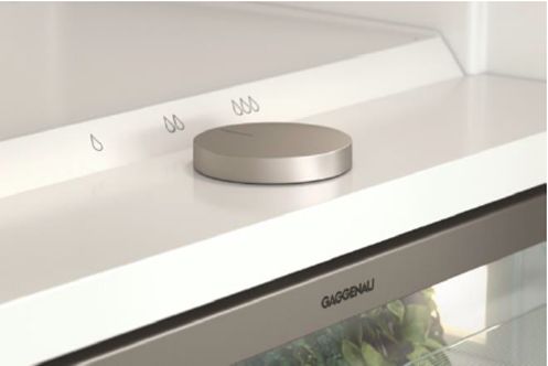 De twee flessenhouders van massief esdoornhout geven het interieur een natuurlijke touch en beschermen flessen van verschillende formaten. Het is mogelijk om tot maximaal vijf flessenhouders over de breedte van het glasplateau te leggen. U kunt dit appar4aat bedienen met de bedieningsknop in bijpassend licht-brons. Door middel van deze knop kunt u gemakkelijk de luchtvochtigheid aanpassen en zo blijven uw ingrediënten vers.