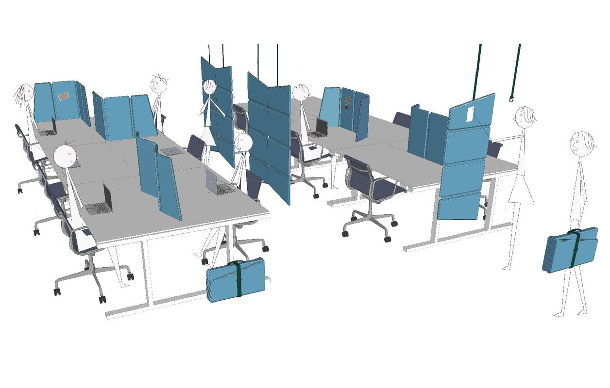 VLINDER akoestisch flex-scherm beweegt met je mee, zonder je te belasten, daar zij nog geen kilo weegt. De nieuwe manier van comfortabel en gezond werken!