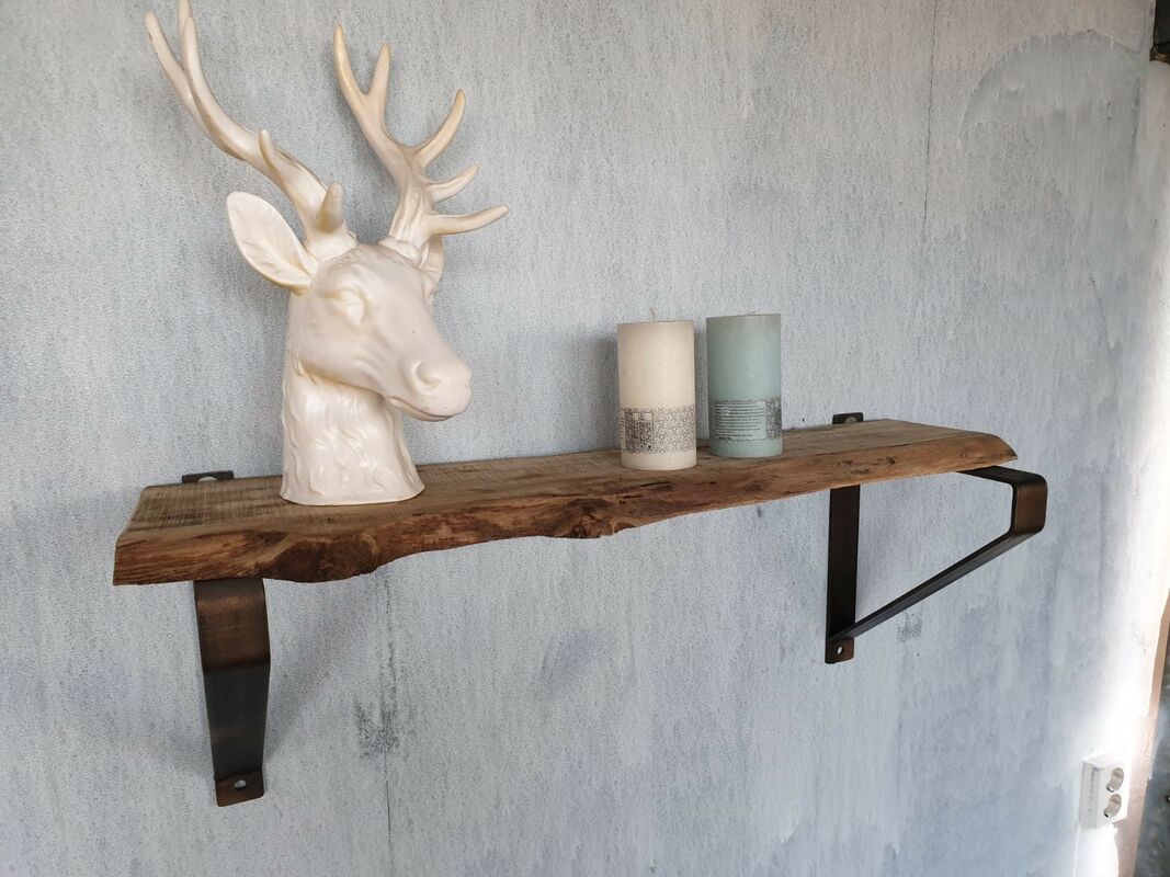 Wij leveren prachtige bijpassende beugels waar de plank mee opgehangen kan worden. We maken de beugels ook op maat en in verschillende kleuren.