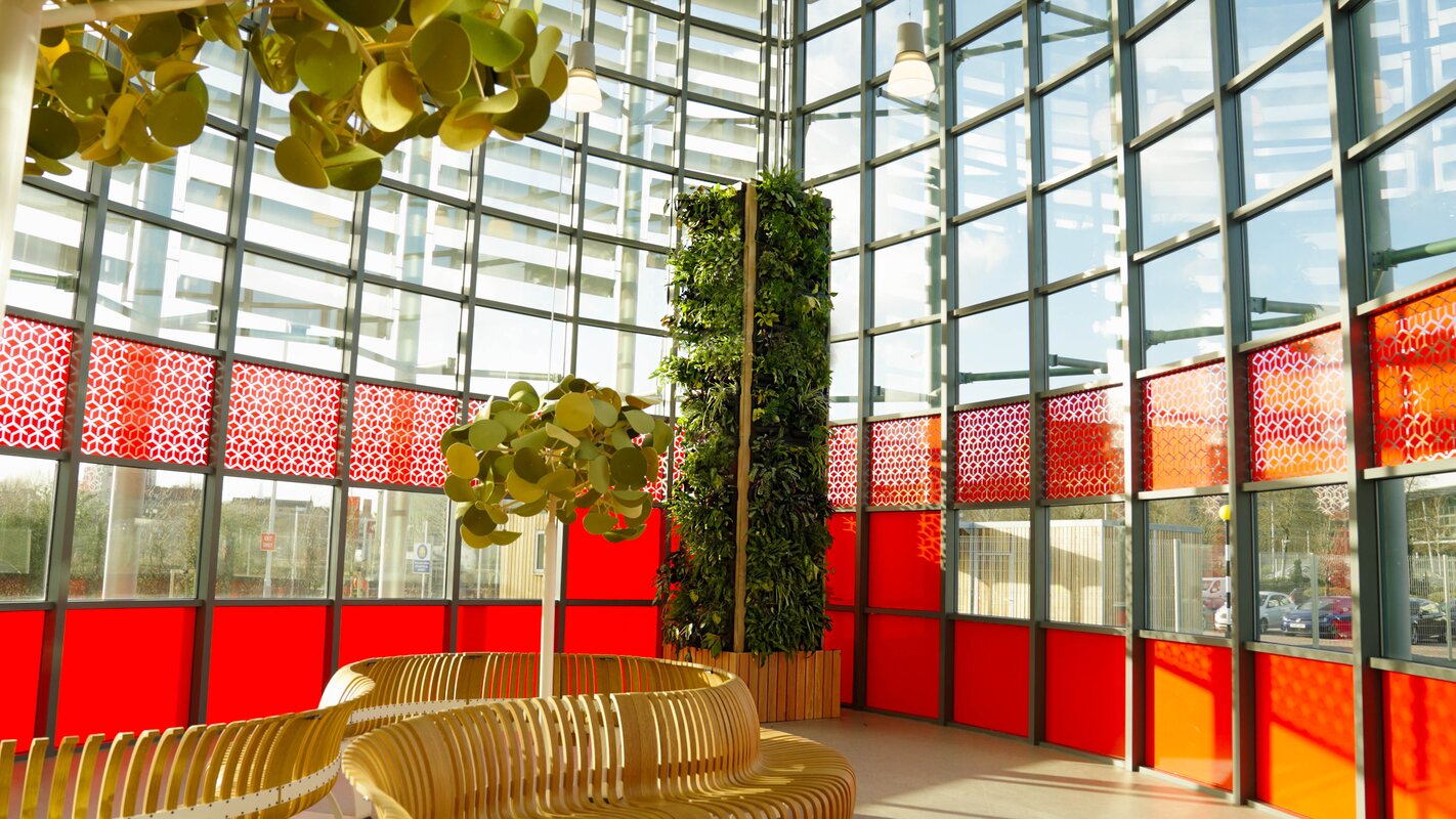 De voordelen van de LivePanel reiken veel verder dan esthetiek. De groene wand neemt minimale ruimte in beslag, terwijl het de luchtkwaliteit en het binnenklimaat verbetert, wat op zijn beurt concentratie, productiviteit en algeheel welzijn bevordert. “De DPD Living Wall is meer dan alleen een verticale binnentuin—het is een levend bewijs van de kracht van groen in stedelijke omgevingen,” zegt Ricky Talbot, CEO van Living Walls UK. Met zorgvuldige planning en vakmanschap werd een diverse selectie planten gekozen om een bloeiend ecosysteem te creëren dat de lucht zuivert.