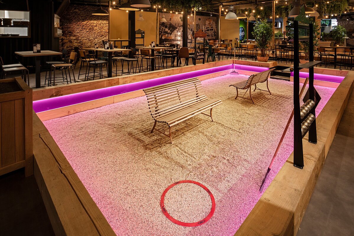 BoulesBitesBar is een franchise concept dat het klassieke Franse "Jeudeboule" combineert met eten en drinken, in een urban ambiance. In een groeiend aantal plaatsen in Nederland en België zijn vestigingen van de BoulesBitesBar te vinden. Voor een aantal vestigingen, zoals in dit voorbeeld die in Eindhoven, wordt gebruik gemaakt van de verlichting van SLV Nederland.