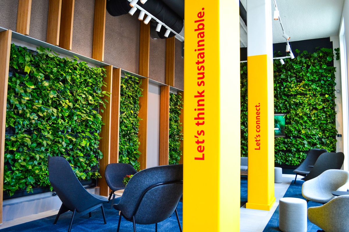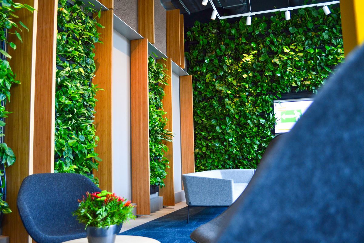 In de ontvangstruimte zijn er meerdere plantenwanden geplaatst. Deze groene wanden zorgen niet alleen voor een wauw effect, maar ook voor een betere luchtvochtigheid, zijn ze ruimtebesparend en wordt er een verfrissend groene uitstraling aan de ruimte toegevoegd.
