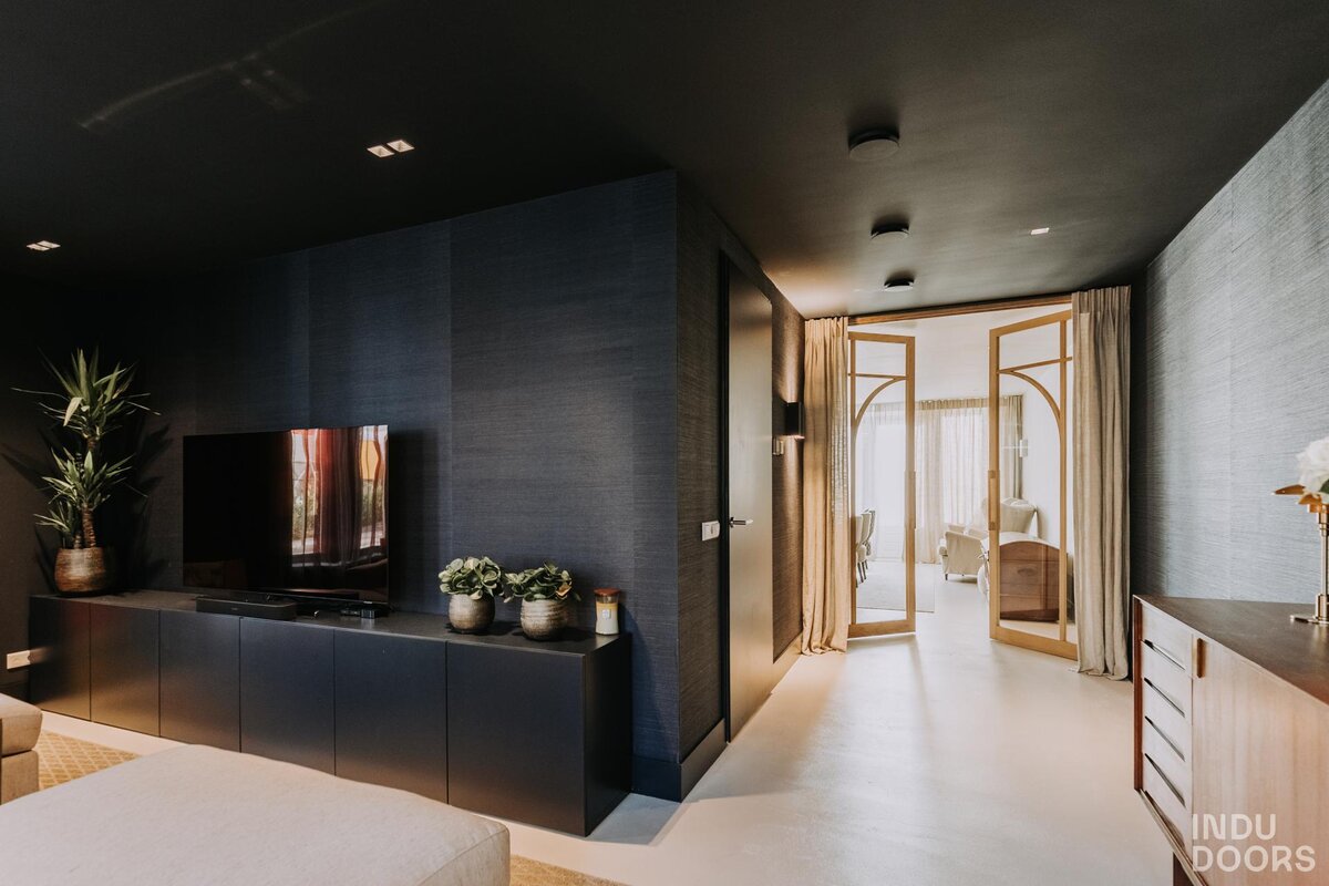 Organische vormen zien zij steeds meer terugkomen in ieder interieur, zo ook de binnendeuren van InduDoors®. Deze klant koos voor model ‘Milaan’ als dubbele deur van keuken naar woonkamer. In de woonkamer is gekozen voor een donkerdere inrichting en in de keuken juist voor een lichte inrichting. De gordijnen die bij de deuren hangen kunnen dicht, om zo net wat meer afscheiding te creëren.