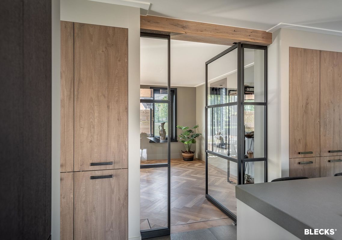Onze dubbele stalen taatsdeuren met zijlichten bieden u een zee aan licht én design. Elegant en strak vormgegeven, passend bij een veelvoud aan interieurstijlen. Een prachtige combinatie van hoogwaardig gecoat staal in mysterieus zwart met de transparante lichtheid van het duurzame veiligheidsglas. Bij dit project is er gekozen voor kamerhoge dubbele deuren in het midden, voorzien van een soepel scharnierpunt en twee zijlichten. Benieuwd naar de mogelijkheden bij u thuis of op kantoor? Vraag vrijblijvend een offerte aan!