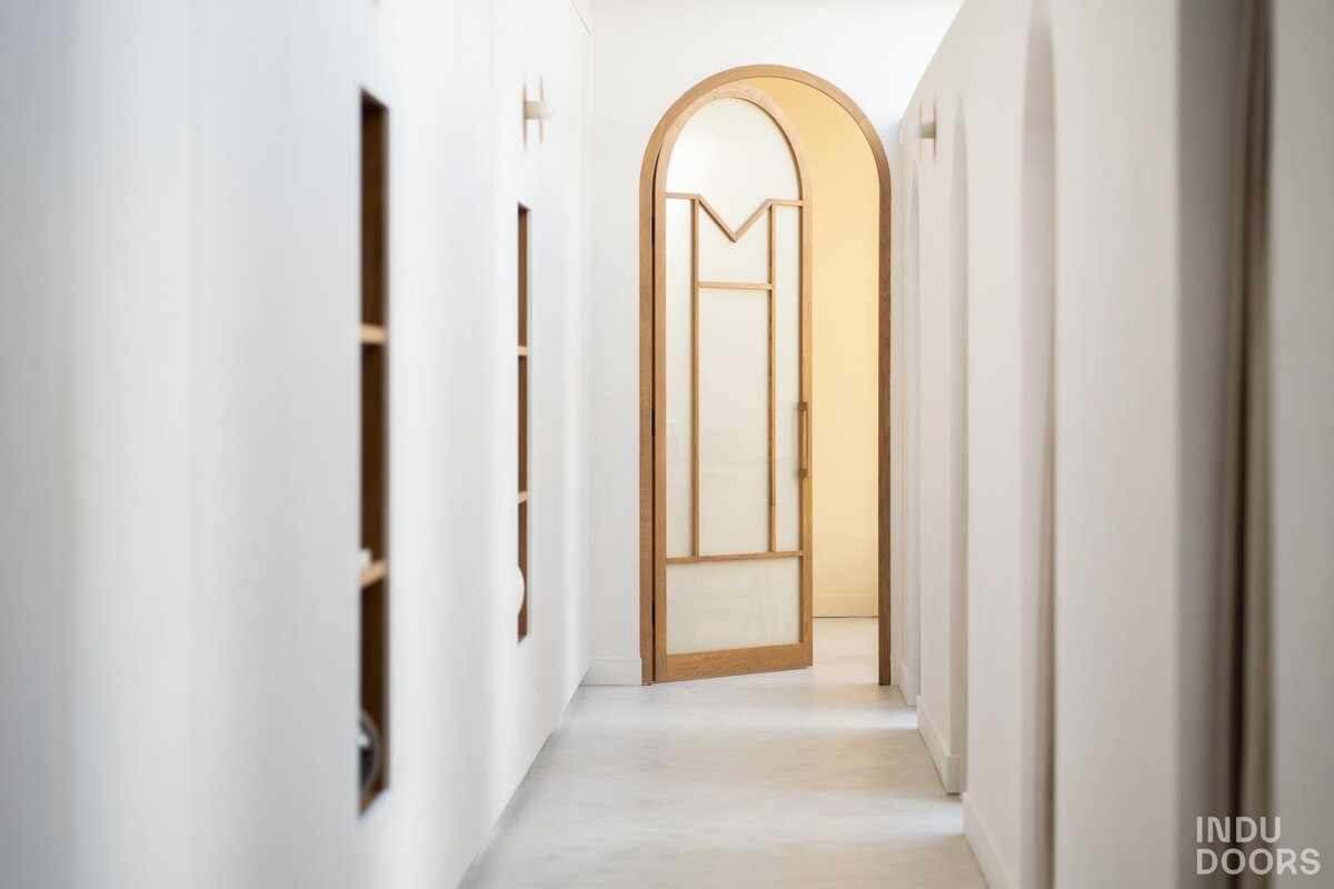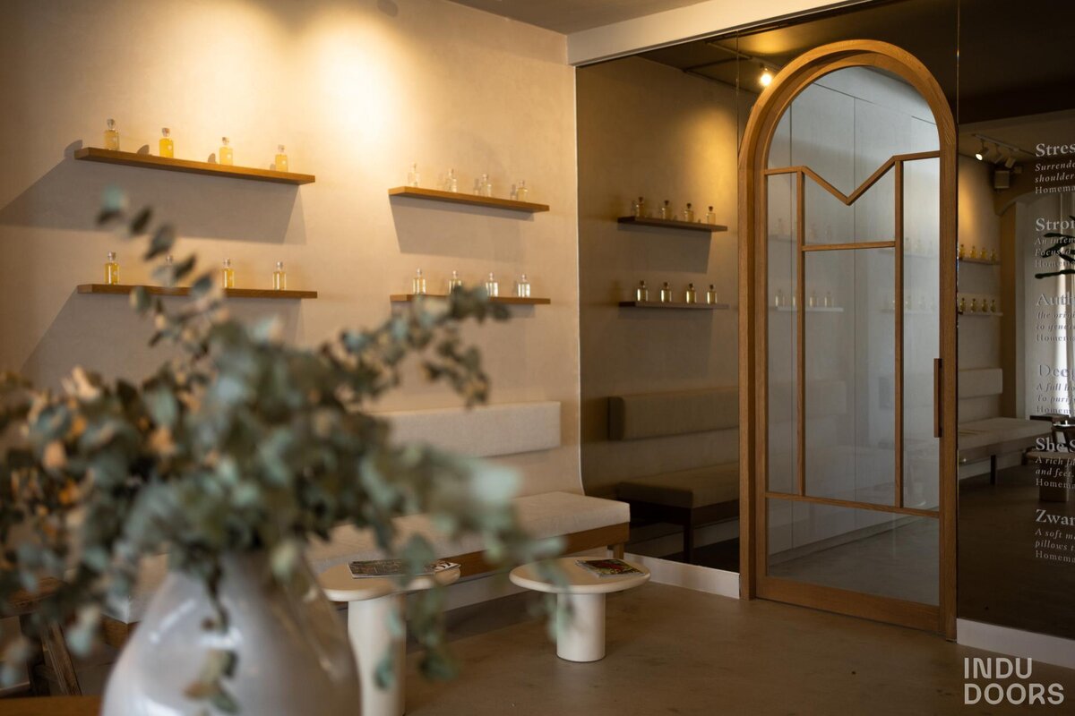 In het centrum van Amsterdam aan de Ceintuurbaan is 'het Massagehuys' gevestigd. Onlangs heeft InduDoors® daar twee exclusieve binnendeuren geplaatst. De binnendeuren zijn getoogde met een bijpassend kozijn, het logo van Het Massagehuys is in de roedeverdeling verwerkt, dit allen leidt tot een prachtig geheel. De eerste getoogde deur is in blank glas uitgevoerd en de achterste binnendeur met mat glas. De handgrepen zijn van hetzelfde eikenhout gemaakt, wat rust geeft. Kortom een prachtig project waar alles klopt!