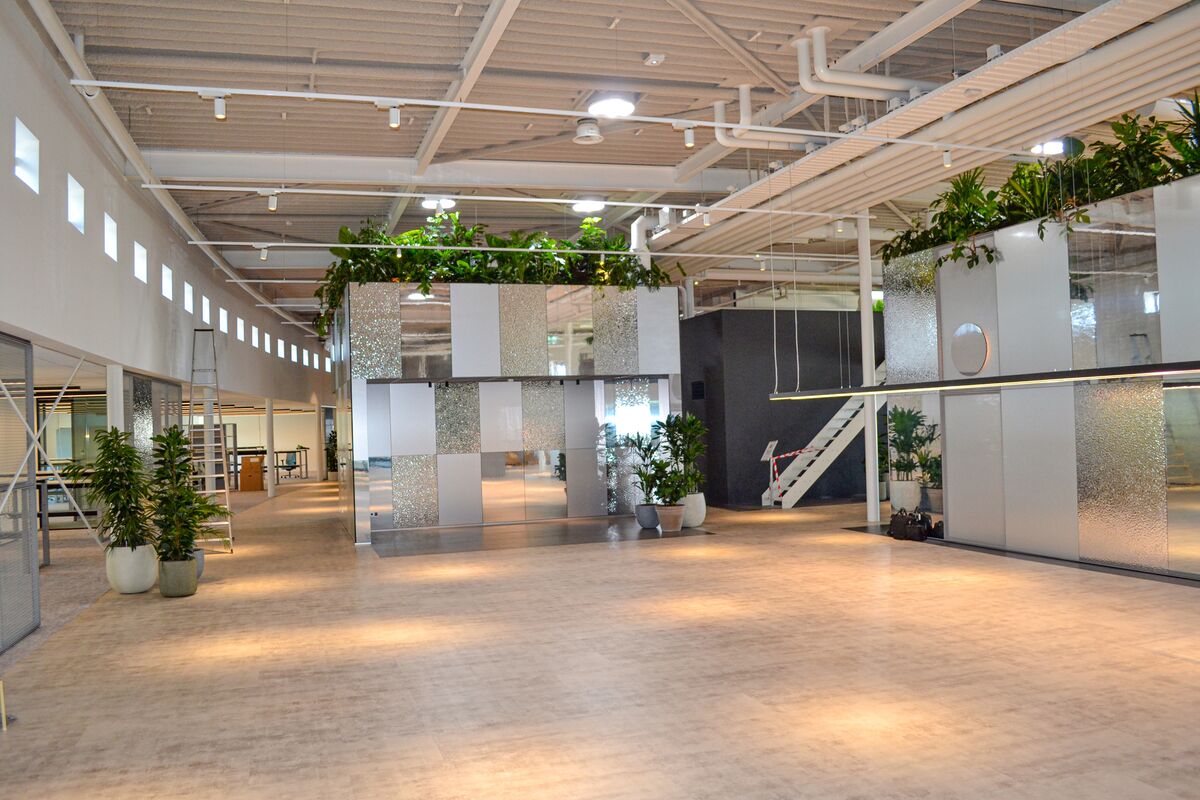Daarnaast is er gekozen voor royale beplanting boven de werkplaatsen. Dit verbetert niet alleen de luchtkwaliteit maar zorgt ook voor een betere verdeling van de temperatuur. De beplanting is rondom de gehele werkplaats gevestigd, waardoor er een ware groene oase wordt gevormd. Naast het feit dat de beplanting prestatie verhogend werkt, heeft het ook een positieve werking op het algemene welzijn van mensen. Dit kan resulteren tot maar liefst 20% minder ziekteverzuim van medewerkers op jaarbasis.