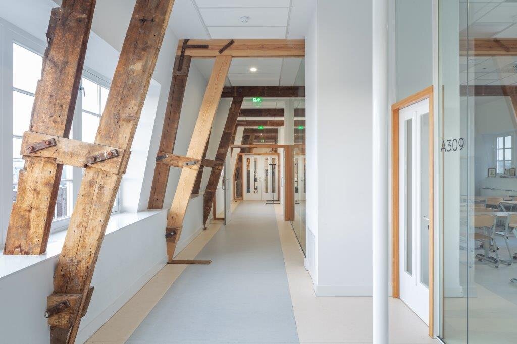 Na de brand was er al snel de blik naar voren; dit bood de kans om het gesloten donkere gebouw te transformeren naar een klimaat dat past bij het onderwijs van morgen. In het hele gebouw is zicht gecreëerd door glas aan te brengen zodat je elkaar kan zien. Er komt meer daglicht binnen en de lokalen en groepsruimten zijn vergroot. Het is een prachtig gebouw geworden wat daarnaast ook energie efficiënt en duurzaam is met een goed binnenklimaat. Het voldoet aan de eisen van vandaag zonder afbreuk te doen aan de bijzondere historische kenmerken.
