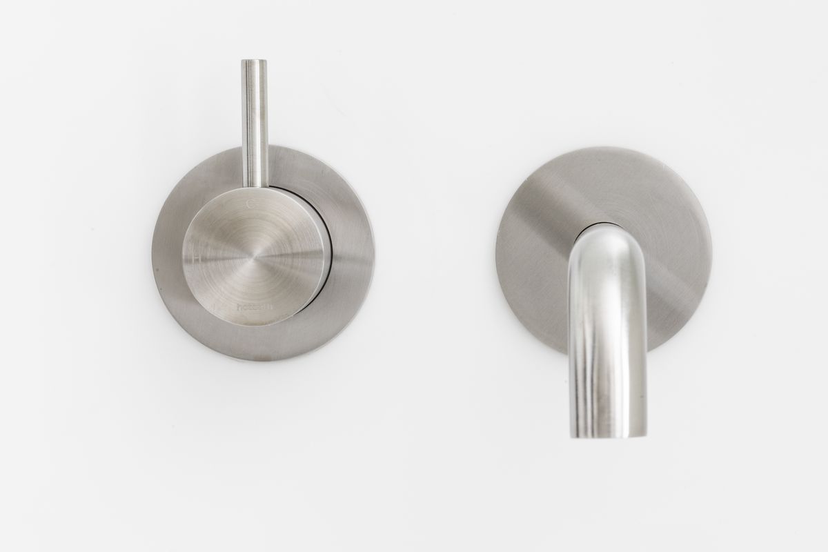 'Bij ons hoef je niet aan te komen met kranen in rosé goud of glanzend chroom’, zegt Eric Steketee lachend, terwijl hij een rondleiding door z’n Amsterdamse appartement geeft. Vandaar dat de kranenserie Archie van Hotbath ons meteen aansprak. De kranen zijn gemaakt van roestvrijstaal (RVS) en hebben een mooie, matte look dankzij de geborstelde afwerking. Het past goed bij de andere materialen in ons huis, zo is het werkblad in de keuken ook gemaakt van RVS. Bij Hotbath konden we alle kranen voor de badkamer in dezelfde finish laten uitvoeren, een groot pluspunt voor ons. Wat me ook meteen opviel is dat alle namen van de kranenseries van Hotbath verwijzen naar het woord vriend: Pal, Bloke, Chap en ga zo maar door. Leuk, die knipoog.’