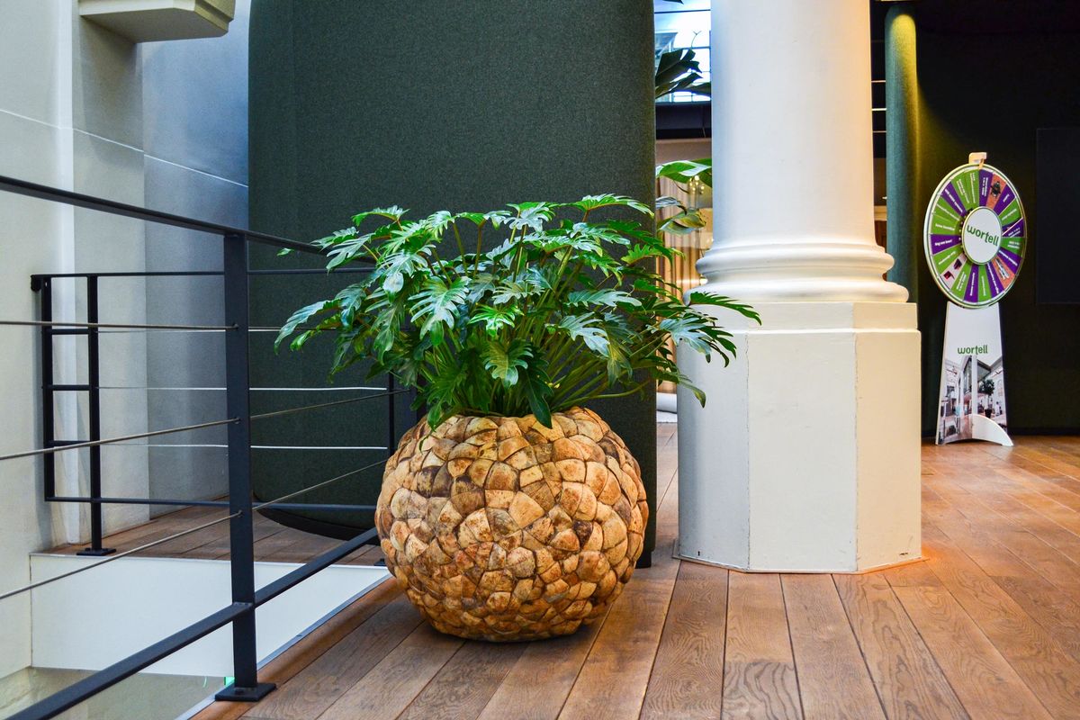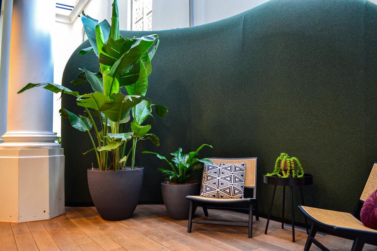 De groenobjecten zijn voorzien van veel verschillende planten zodat elke ruimte uniek is aangekleed. Ook hierbij is de plantkeuze ten opzichte van de ruimte en plantenbak zorgvuldig afgewogen. Zo staat er in de grote open ruimte een prachtige palm. De Caryota Mitis is ruim 5 meter hoog en zorgt ervoor dat de ruimte wat intiemer aanvoelt. Daarnaast draagt deze eyecatcher er aan bij dat je groen ervaart op ieder niveau.