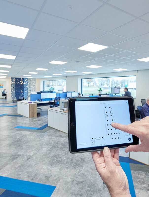 Martijn den Besten was als business development manager nauw betrokken bij de invulling van het lichtmanagement voor JMBA. "Zoals Peter al aangaf hebben we voor JMBA de verlichtingsinstallatie geleverd, waarin ons intelligente lichtmanagementsysteem LiveLink Premium de complete verlichtingsinstallatie centraal aanstuurt. Vooral de samenwerking met JMBA was prettig. Want zoals de heer Meeuws al aangeeft, houden zij van technologie. Hierdoor mocht de lichtsturing een belangrijke rol spelen in ons totaalconcept. Dat bood ons de mogelijkheid om een maximaal intelligent lichtadvies op tafel te kunnen leggen. Onze lichtlijnen op basis van DALI schakelen op basis van aanwezigheid en daglicht. Daar bovenop maakt JMBA gebruik van onze LiveLink Cloud monitoring services. Daarmee heeft JMBA altijd en overal toegang én inzicht in de verlichtingsinstallatie."