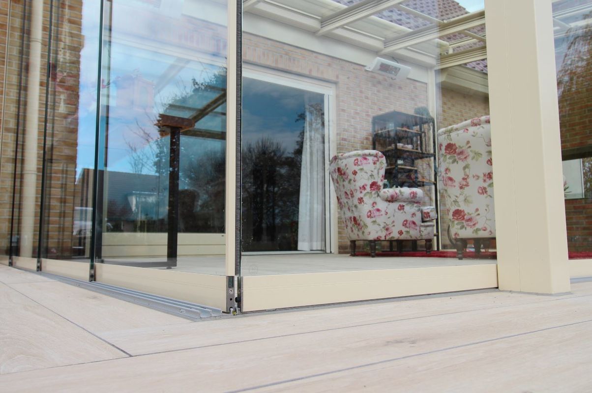 Omdat de tuinkamer aan het water staat en de tuin daar naar afliep, was er een goede fundering nodig. Het schuifdak van Ittalum heeft een afloop van 5 graden nodig voor de afloop van het regenwater. De diepte van de tuinkamer zorgde ervoor dat er een aanpassing aan het dak gemaakt moest worden. In samenwerking met een aannemer is er een inkeping in het dak en dakgoot gemaakt en hier de tuinkamer aan gemonteerd. De tegels heeft de opdrachtgeefster zelf uitgezocht en zijn nadat de tuinkamer is geplaatst gelijmd. Door gebruik van de juiste kleurcombinaties is de tuinkamer helemaal passend aan haar woning. Alle schuifwanden kunnen open en zonder kaders geeft dit een panoramisch uitzicht rondom de woning op het water en de groene tuin.