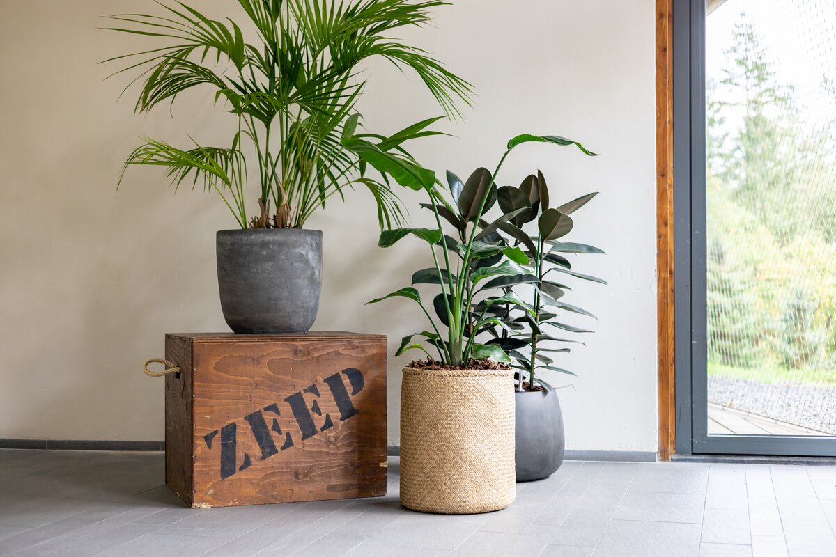 Er is afwisseling gecreëerd door het gebruik van potten en bakken van verschillende materialen, zoals metaal, terracotta, klei, rubber, bamboe en beton. Materialen, stijlen en planten worden per ruimte gevarieerd, zodat het een geheel blijft. Dit maakt het speels en variërend, zonder chaos te creëren.