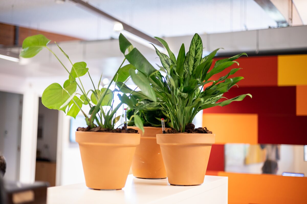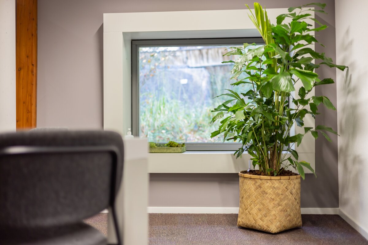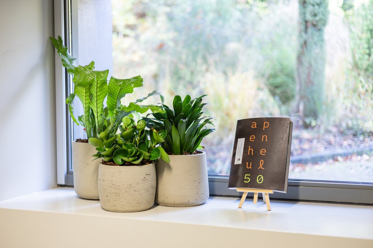Het park is erg groen, maar op kantoor ontbrak dat een beetje. Daarom hebben we een mooie variatie aan interieurbeplanting mogen leveren om de ruimtes op te fleuren.