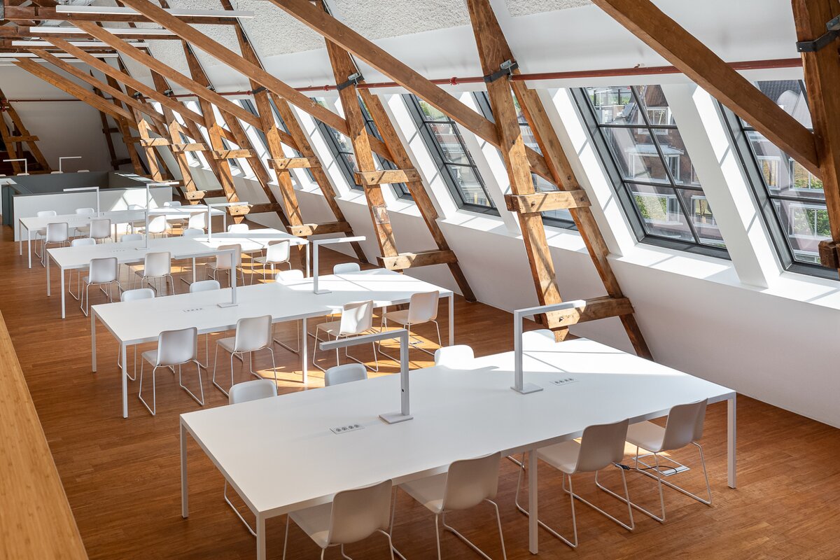 In de bibliotheek wordt gewerkt en gestudeerd. Om de bezoekers overal in de bibliotheek een goed uitgeruste werkplek te bieden, zijn de inbouw stopcontacten Bachmann Power Frame en de OCS Evia op verschillende plekken in de bibliotheek gemonteerd. Beide producten kunnen helemaal naar wens van de klant worden samengesteld.