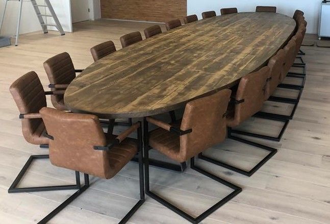 Dit is een prachtige gerecyclede tafel. Die wij maken tot wel 10 meter lang en 5 meter breed. Voor ieder wat wils want alles kan. De randen kunnen verjongd of geverfd worden, de tafel kan gekleurd worden en we kunnen lange of korte planken gebruiken. Wij maken ook elk onderstel zelf. De onderstellen kunnen met elk blad gecombineerd worden. Check onze website of kom eens langs in een van onze showrooms!