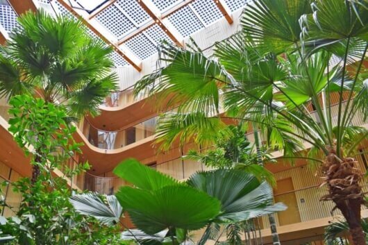 Daarnaast is een voedingsstoffenafgiftesysteem geïntegreerd om planten automatisch van de juiste voedingsstoffen te voorzien. Om het watergebruik verder te verduurzamen, wordt hemelwater opgevangen en hergebruikt voor irrigatie. Dit vermindert het gebruik van drinkwater en draagt bij aan een circulair waterbeheer.