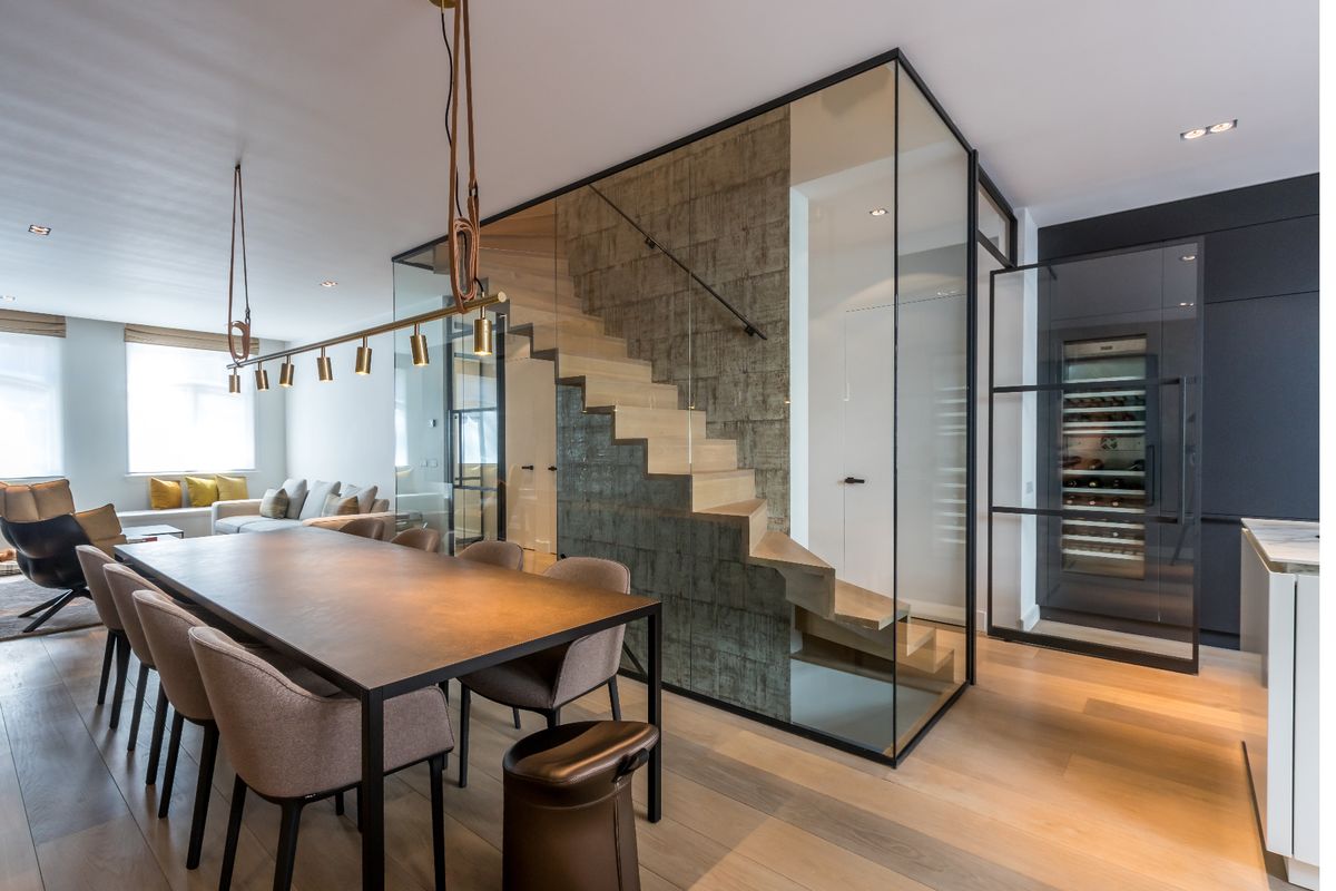 Voor een woning in Amsterdam hebben wij deze waanzinnige trappen mogen ontwerpen en installeren. Een heel speciaal ontwerp dankzij slanke treden en stootborden en het gebruik van glas waardoor de trap zichtbaar is vanuit elke positie in het huis; een echte eyecatcher.
