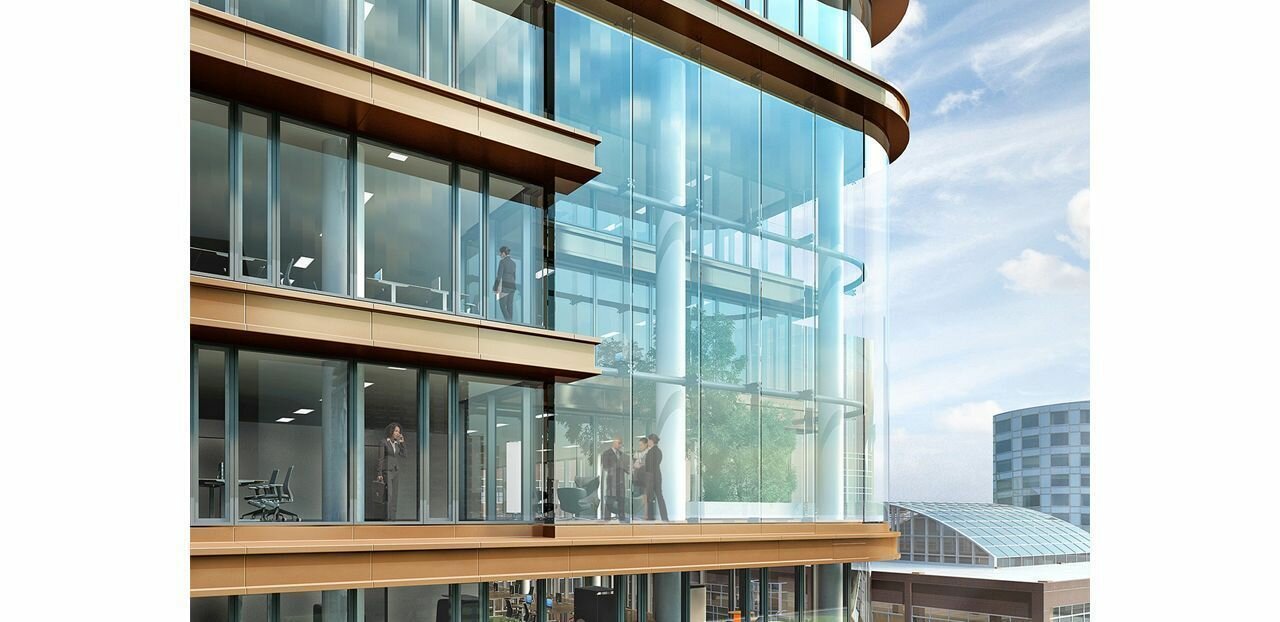 hoog. Om de constructie zo transparant mogelijk te maken, koos het ontwerpteam van Octatube voor structurele glazen vinnen. De hoeken van de wintertuinen zijn gerealiseerd in grote ruiten. In totaal bevatten de wintertuinen 900 m² glas.