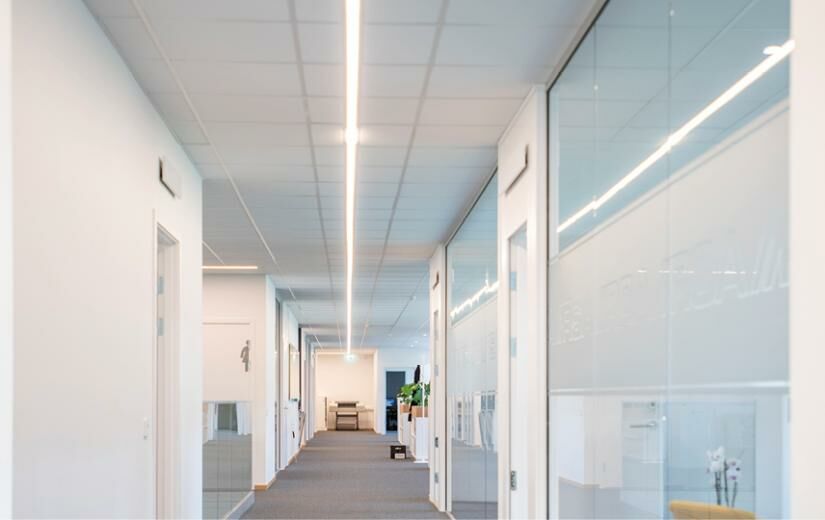 In samenwerking met het Custom Design-team van SG ontwikkelde de Zweedse afdeling van SG een oplossing op maat met ingebouwde Lineal-armaturen in de gemeenschappelijke ruimtes. In de vergaderzalen koos men eveneens voor ingebouwde Lineal-armaturen in combinatie met Junistar Soft. Boven de bureaus hangen afzonderlijke Lineal-armaturen, die worden aangevuld met Junistar Soft met TW LEDDim-bediening.